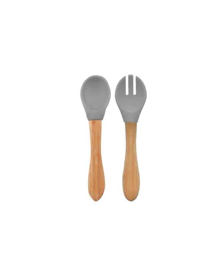 OİOİ Mama Kaşığı + Çatal - Powder Grey